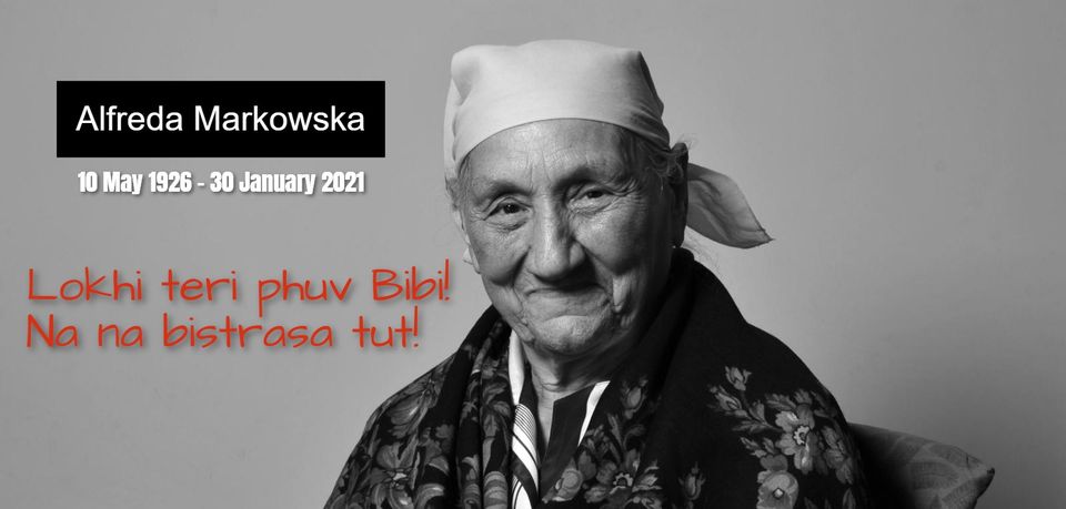 At the age of 94, Alfreda Markowska has passed away on 30 January 2021. She survived the Roma Holocaust during the Second World War and is a true Polish Romni Heroine, who saved more than fifty Romani and jewish children from from death at the hands of the Nazis. She was born on 10 May 1926 in a Polska Roma tabor (mobile camp) to a traveling family in today’s Poland. She was the only survivor of the murder of her whole family, including her parents and siblings, by the Nazis in 1941. in this single massacre near Biała Podlaska between 65 to 85 members of her extended family were murdered.…